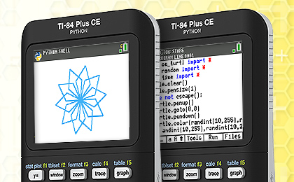 TI-84 Plus CE Python graphing calculator, Python, along with TI-Basic, empower students to program anytime, anywhere using a dedicated, distraction-free tool.